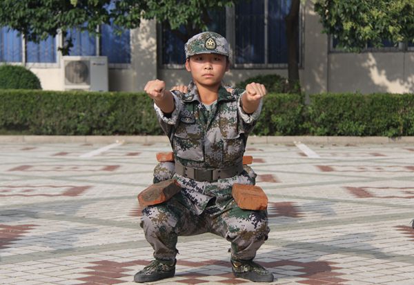 18—19岁的女孩子正是爱美的年龄,每年5—6月份国旗班要开展为期一个月的强化训练,此时太阳暴晒,气温高,防晒护肤品根本不起作用,参加训练的同学全都晒得黑黝黝的,“显得牙齿特别白,可以做牙膏广告了。”姑娘们这样自我解嘲。程秀敏是轻工系服装设计专业的学生,说起进国旗班的初衷,是因为她向往军队的生活,向往穿迷彩服的神气,也有想着减肥的小心思,国旗班招新报名时展出的刻苦训练的照片没有把她吓跑,反而深深打动了她。每天早晨5:30起床后,程秀敏为了不打扰宿舍其他同学借着手机的微光悄悄起床。起初,她在训练中常常因为用力不当而受伤,但却从未因为伤痛请过一天假,在校医院拿点药自己敷上接着训练。国旗班不管男生女生都要做踢正步的强化动作,脚尖下压,离地面20公分,脚背上放两块砖,抬起的另一侧手臂也放置两块砖,后背插上十字架,时间保持5、6分钟,一段时间后感觉身体东倒西歪,只能咬牙坚持,这时颤抖的腿将砖头掉在地上,对面一组深蹲的同学就将砖头拾起重新放好,继续做完规定动作。蹲马步时,腿上也加了砖头,大腿和全身肌肉一开始是疼,接着发抖,然后是麻木到没有知觉,站起身时需要双手撑地才能起身。当然这些动作实在坚持不住了可以打报告休息,程秀敏总是咬牙坚持,很少因为不能坚持而打报告。她的军体拳是所有训练科目中做得最好的一项,动作标准到位,口号洪亮。训练期间,她没有因为女生的身体原因请过假。两年来的训练生活让她感到体力更好了,也很少感冒,大学生活非常充实,学习上更加刻苦努力,各科成绩优异,还是班里的学习委员,在她的带领下,全班同学没有挂科的。科任老师都记住了程秀敏这个名字,很多学习方面的事情直接找她布置。因为大一的良好表现,她拿到了国家励志奖学金5000元。