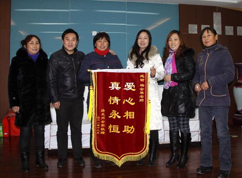 还有一次杨老师家附近拆迁,一个30多岁的妇女带着一家老小在废墟上拣砖头,一家人衣服破烂几乎不蔽体。杨老师赶忙把家人的衣服包了一大包给他们送去。拾荒的人,是社会的最低阶层,受尽了人们的白眼和冷遇,可是杨老师却毫不迟疑伸出了援手。她说其实接受比给予更高尚,她能接受我的帮助,我心里真的很高兴。