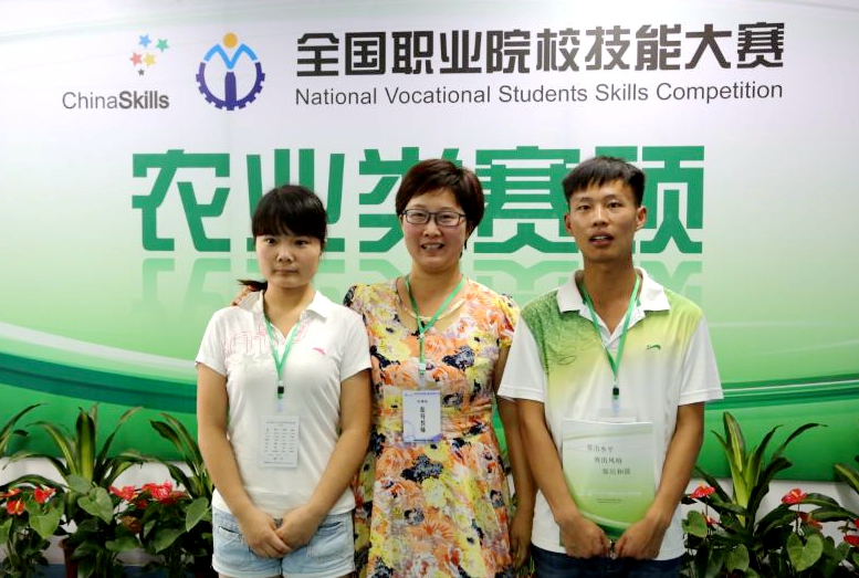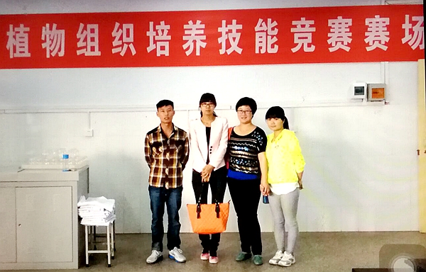 2014年3月辅导学生参加省职业技能大赛植物组织培养项目获二等奖(右二为王婷婷老师)