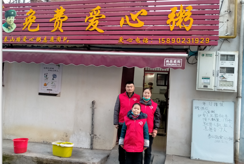 冬天天气寒冷,环卫工人一大早就起来打扫卫生,时常连早饭都顾不上吃。何琦看在眼里,记在心里,心头萌生了给环卫工人及低收入群体提供热腾腾早餐的想法,并得到了妻子的大力支持。于是在2016年,何琦、曹璐璐夫妇和一些志同道合的朋友筹建了泰山路免费爱心粥项目。每天清晨5点多,天色未亮,夫妇俩就到爱心粥屋与大家一起做饭、盛饭、刷锅、洗碗。为附近环卫工人、孤寡老人等低收入群体提供免费早餐。